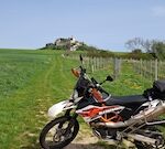 KTMs passen auf den Anhänger, danach bei Angern mit der Fähre über die March. Durch die Hügeln der kleinen Karpaten und als Abschluß der Hausberg von Bratislava.