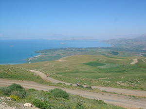 Es geht wieder in die Berge, vor Billis teilen wir uns auf, eine Gruppe auf der Straße, die andere über unbefestigte Straßen. Wir finden eine Strecke durch Täler, die Straße ist geschottert und sie führt uns durch eine wunderschöne Landschaft. In einer Ortschaft suchen wir dann den Weg, wir kommen in ein Tal, doch das ist nicht der richtige Weg. Wieder zurück und dann geht es weiter hinauf. Wir erreichen den höchsten Punkt unserer Reise, 2730m zeigt das GPS an. Es geht hinunter und wir können den riesigen Vansee schon sehen. Am Ufer treffen wir unsere Kollegen und es geht durch Van, wir beschliessen weiterzufahren und erleben den Sonnenuntergang. Es ist schon dunkel und wir erreichen Erics, finden ein Hotel und freuen uns auf das Abendessen.