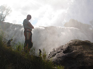 Wir fahren durch eine grüne Hügellandschaft, es ist sonnig aber der Wind ist kalt. Wir fahren vorbei an Schafherden und nach Aksar geht es wieder in die Berge. An einem Fluss finden  wir einen schönen Rastplatz, die Straße ist schön zum Motorradfahren. Es ist aber ein Mix aus unbefestigter, neuer, alter Straße, manchmal leider begradigt aber vor allem Kurven. Wir erreichen einen Stausee, am Ende ist ein Wasserfall. Der Tortum Selalesi ist wesentlich höher und beeindruckender als der Wasserfall in Muradyne und die Erfrischung mit die feine Wasserdusche ist angenehm. Nach vielen Kurven erreichen wir Yusufeli, dort quartieren wir uns im Hotel Barcelona ein. Der Pool ist herrlich und wir geniessen das Abendessen.