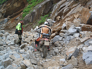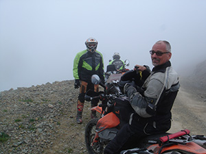 Nach dem Frühstück teilen wir uns auf, wir zweigen in ein Tal ab und es geht über eine schöne Straße in die Berge. Nach dem Asphalt folgt nun eine herrliche Offroad Strecke, wir passieren kleine Ortschaft, verfallenen Häuser und Bauernhöfe. Einmal müssen wir über eine Wiese fahren um zur der anderen Straße zu kommen. Jetzt geht es aber hinunter, nach einigen Kurven aber eine Überraschung. Die Straße ist abgerutscht, wir stehen vor einer Steinlawine. Wir sehen weiter unten eine Baustelle und ich versuche die Steine zu überwinden und es gelingt. Ich fahre zu der Baustelle und die Arbeiter sagen wir sind auf der Straße zum Kloster Sumela. Wieder zurück, wir bauen die Koffer von Gerhard P.  KTM und Helmuts BMW ab, und gemeinsam überwinden wir das Hindernis. Zum Kloster ist es nicht mehr weit, die Felsmalereien im Kloster Sumela sind beeindruckend. Unterhalb des Klosters treffen wir den Rest der Gruppe und nach dem Essen geht es weiter. Nach Torul geht es über einen 2000 m hohen Pass und die Naturstraße ist schön zu fahren und bald sind wir wieder auf der Hauptstraße. In Sebinkarahisar finden wir ein Hotel und wir haben heute viel zu erzählen.